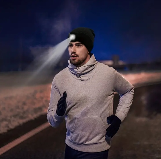 "I love this beanie! It's perfect for my early morning runs and evening walks. The LED lights are super bright and the hat itself is really warm." - Sarah K.